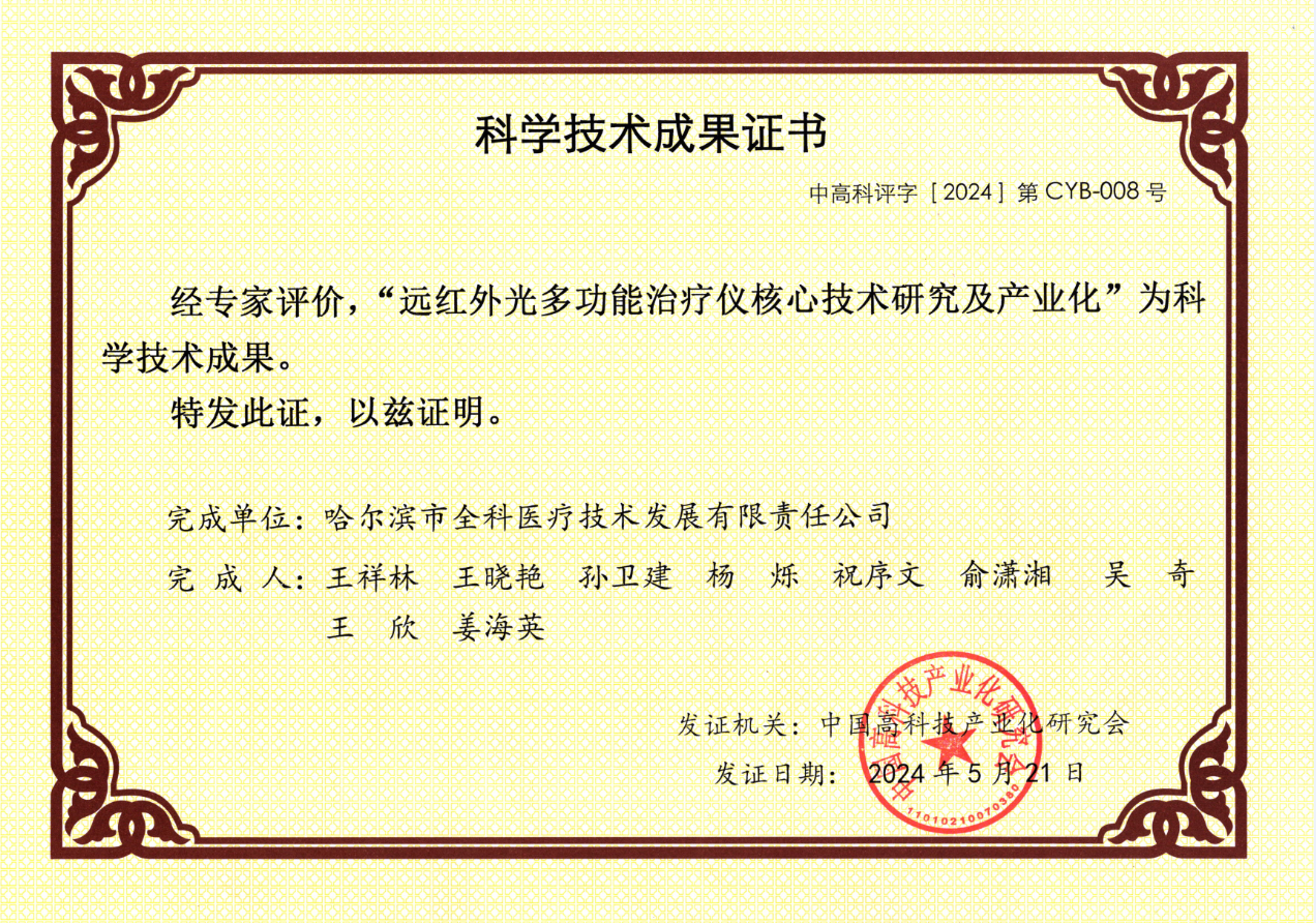 哈尔滨市全科医疗技术发展有限责任公司是由多峰宽带生物能量波物理疗法的创始者和全科治疗仪发明人王祥林先生和王晓艳女士共同创办的,是黑龙江省政府授予的高新技术企业。自公司成立以来,以“全心全意为人民服务,造福人类,提高人类生命质量和健康水平”为宗旨,致力于高科技医疗设备的研发和制造,不断探索医疗新科技,研制成功全科治疗仪系列产品三十余种,产品可在医院各个科室和家庭广泛使用。由于全科治疗仪的治疗效果好、治疗范围广,所以受到了国内外医务界和家庭的青睐。